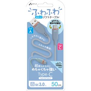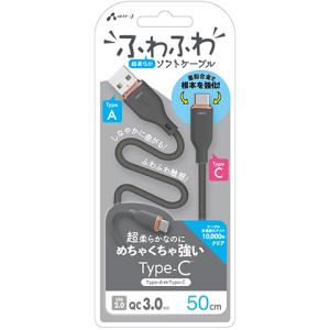 - エアージェイ Type-C 強化コネクターふわふわケーブル 50cm(グレー) air-J UCJ-AW50GY 返品種別A