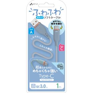 - エアージェイ Type-C 強化コネクターふわふわケーブル 1m(ブルー) air-J UCJ-AW1MBL 返品種別A