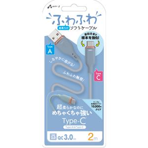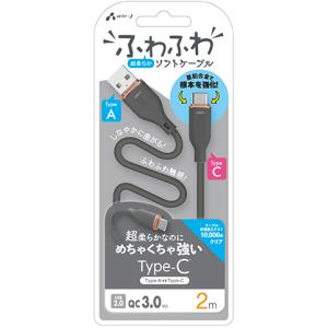 - エアージェイ Type-C 強化コネクターふわふわケーブル 2m(グレー) air-J UCJ-AW2MGY 返品種別A