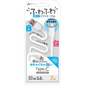 - エアージェイ Type-C 強化コネクターふわふわケーブル 2m(ホワイト) air-J UCJ-AW2MWH 返品種別A