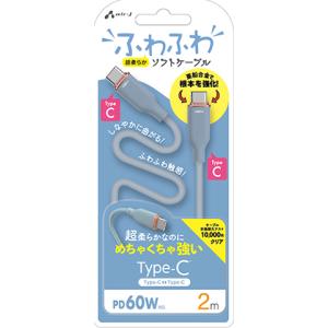 - エアージェイ PD対応 Type-C 強化コネクターふわふわソフトケーブル USB(C to C) 2m(ブルー) air-J CCJ-AW2MBL 返品種別A