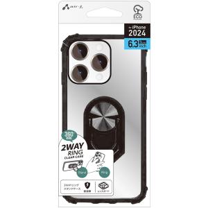 - エアージェイ iPhone 16 Pro用 マルチリングスタンドケース(ブラック) air-J AC-P24P-TRBK 返品種別A