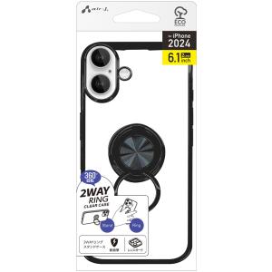 - エアージェイ iPhone 16用 リングスタンドケース(ブラック) air-J AC-P24-MRBK 返品種別A