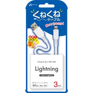 - エアージェイ MFIライトニング くねくねケーブル 3m(ホワイト) air-J MUJ-WLP3MWH 返品種別A