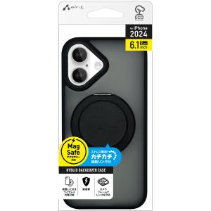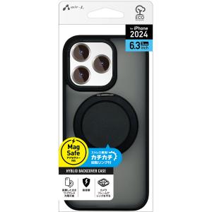 - エアージェイ iPhone 16用 MagSafe対応 カチカチ回転リングスタンドクリアケース(ブラック) air-J AC-P24-MRSBK 返品種別A