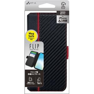 - エアージェイ iPhone16e用 MagSafeアクセサリ対応手帳型PBケース(カーボン/ レッドライン) AC-SE25-PBCBR 返品種別A