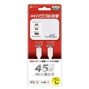- エアージェイ PD45W 急速パワフル充電器(USB-C×2+USB-A)+Type-C(C to C)ケーブルセット AKJ-PD45DX WH