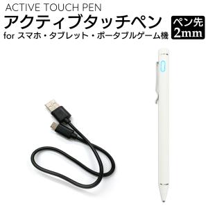 - タッチペン スタイラスペン 充電式 2mm クッション 衝撃吸収 iPhone スマホ ポータブルゲーム機 ホワイト ブラック 手書きペン 描画 極細