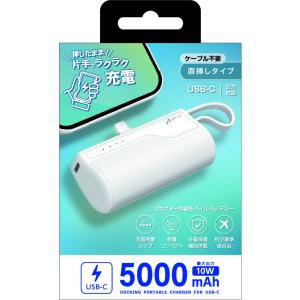 - エアージェイ 直挿しタイプ Type-C 横型モバイルバッテリー+Type-C1ポート 5000mAh(ホワイト) air-J MB-T5000CWH 返品種別A
