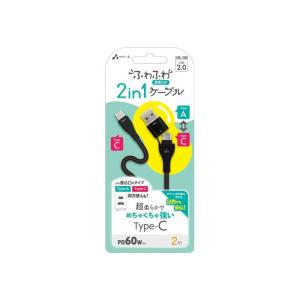 - ふわふわ 2in1ケーブル 2m エアージェイ CCJ-CA2M BK
