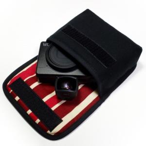 - リコーGR3xケース / GR3ケース--外部ファインダー用(ブラック・ボルドーストライプ)--suono(スオーノ)ハンドメイド
