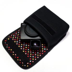 - リコーGR3xケース / GR3ケース(ブラック・カラフルドット)--suono(スオーノ)ハンドメイド