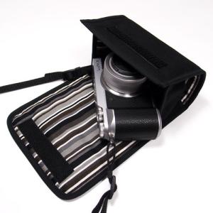 - カメラケース デジカメ LUMIX LX100M2ケース --カラビナ付(ブラック・ボルドーストライプ)--suono(スオーノ)ハンドメイド