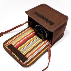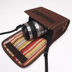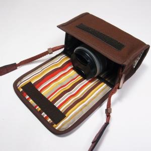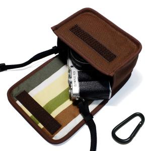 - オリンパスペン E-P7ケース カラビナ付 (ココア・カーキストライプ) 14-42mm EZレンズキット用 suono ハンドメイド