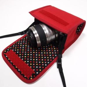 - Nikon1 J5ケース−ダブルズームレンズ用(レッド)--カラビナ付--suono(スオーノ)ハンドメイド