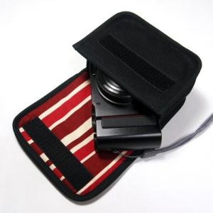 - オリンパスペン E-P7ケース カラビナ付 (レッド・オレンジストライプ) 14-42mm EZレンズキット用 suono ハンドメイド