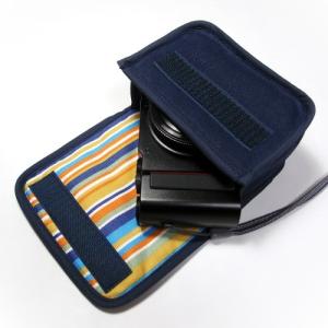 - オリンパスペン E-P7ケース カラビナ付 (ネイビー・ストライプ) 14-42mm EZレンズキット用 suono ハンドメイド