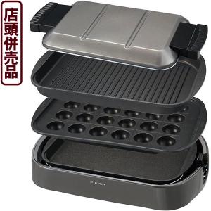 - ピエリア ホットプレート 3枚(平面 波型 たこ焼き) 収納ベルト付き 角型 HPR-120A