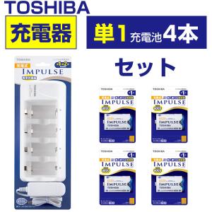 - 東芝 単1形 充電池 4本と充電器セット TOSHIBA 充電式 インパルス IMPULSE TNHC-12SC N TNH-1A