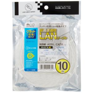 - ミヨシ LANケ-ブル カテゴリ-6 Gigabit対応 フラット 厚さ1mm 幅4mm 10m ホワイト TWF-610W