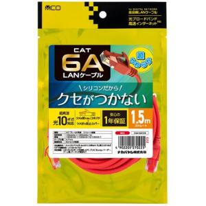 - ミヨシ C6A-SL015R レッド CAT.6A LANケーブル シリコン被覆 1.5m