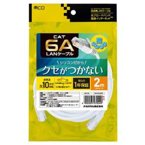 - ミヨシ C6A-SL020W ホワイト CAT.6A LANケーブル シリコン被覆 2m