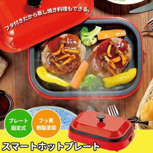 - スマートホットプレート ホットプレート ふた付き フタ付 電気ホットプレート コンパクト 一人用 いためもの 一人焼肉 蒸し焼き 焼肉