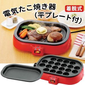 - たこ焼き器 ホットプレート 平プレート付 プレート2枚付 タコ 着脱式 角型電気 たこ焼き器 たこ焼きプレート 18穴 調理機器