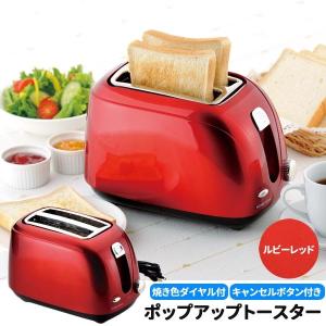 - トースター ポップアップトースター 朝食 ルビーレッド トースター ポップアップ トースト パン焼き 食パン 調節機能付 ポップアップ式