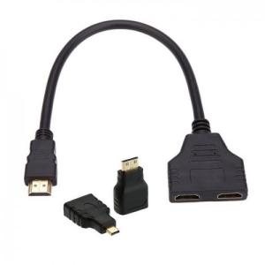 cablecc HDMI-デュアルHDMIメス Yスプリッタースイッチ 延長アダプターケーブル Micro & Mini HDMIアダプター付き