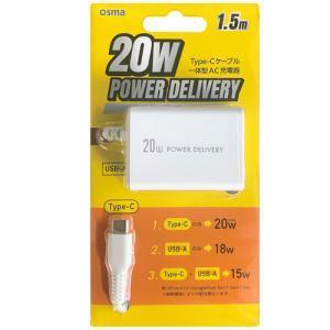 - オズマ OSMA AC-C20PGWH 20WPD AC充電器 Type-C一体型 窒化ガリウム採用 ホワイト