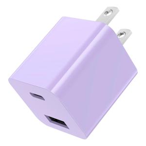 - 藤本電業 PD20W対応 ACアダプタ Type-C×1ポート/ USB-A×1ポート(ラベンダー) CA-08LV 返品種別A