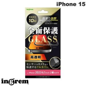 - ingrem イングレム iPhone 15 ガラスフィルム 10H 全面保護 光沢 ブラック IN-P41F/CGB ネコポス可