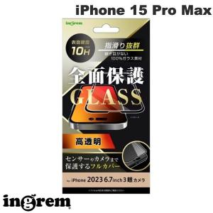 - ingrem イングレム iPhone 15 Pro Max ガラスフィルム 10H 全面保護 光沢 ブラック IN-P44F/CGB ネコポス可