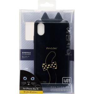 - iPhone XS/X KUSUKUSU IJOY ケース 衝撃吸収フィルム付き 猫 ねこ ネコ しっぽ 黒 ブラック i32AKS03