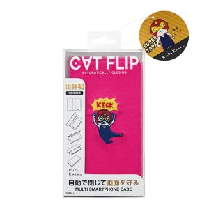 - 汎用型 多機種対応 手帳型 ケース カバー CAT FLIP KUSUKUSU マルチケース Mサイズ 汎用手帳型 プロレス