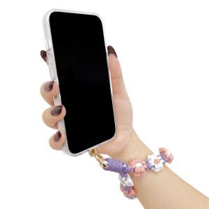 - サンクレスト ハンドストラップ 花編み第2弾 ピンク×ラベンダー iSB-HS07