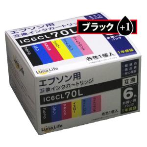 - ワールドビジネスサプライ Luna Life エプソン用 互換インクカートリッジ IC6CL70L ブラック1本おまけ付き 7本パック