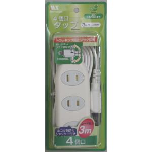- 電源タップ [4個口] 延長コード 3m ホワイト 1500W まで ムービープラグ 電源コード MNT-4ST3M