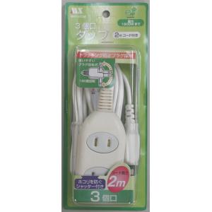 - 電源タップ [3個口] 延長コード 2m ホワイト 1500W まで ムービープラグ 電源コード MNT-ST2M