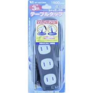 - 電源タップ シャッター付き テーブルタップ 延長コード 4個口 黒 3m MT-4ST3MK