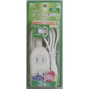 - 電源タップ [3個口]延長コード 5m ホワイト 1500W まで ムービープラグ 電源コード MNT-ST5M