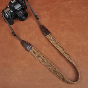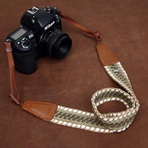 - カメラストラップ コットン (ライトブラウン 編み込み cam-in カムイン CAM8690 おしゃれ 一眼レフ 斜めがけ ロープ 手首 紐