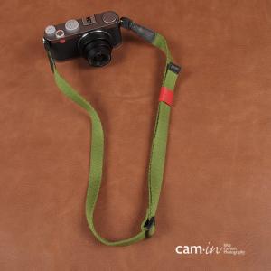 - カメラストラップ コットン グリーン ストラップ おしゃれ 一眼レフ 斜めがけ ロープ 手首 cam-in カムイン CAM1316 リング型