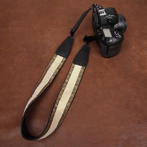 - カメラストラップ コットン ベージュホワイト /コーヒー色 ライン柄 cam-in カムイン CAM8078 おしゃれ 一眼レフ 斜めがけ ロープ