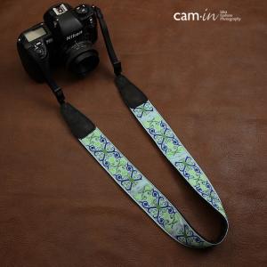 - カメラストラップ コットン マルチカラー 緑系 アジアン cam-in カムイン CAM7504 おしゃれ 一眼レフ 斜めがけ ロープ 手首 かわいい