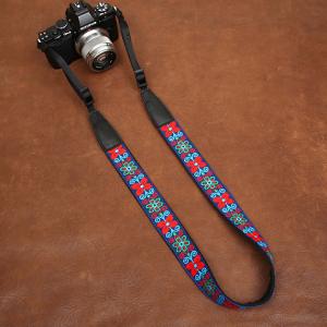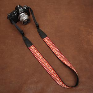 - カメラストラップ コットン マルチカラー 赤系 アジアン cam-in カムイン CAM7550 おしゃれ 一眼レフ 斜めがけ ロープ 手首 かわいい