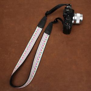 - カメラストラップ コットン マルチカラー 白系 アジアン cam-in カムイン CAM7558 おしゃれ 一眼レフ 斜めがけ ロープ 手首 かわいい