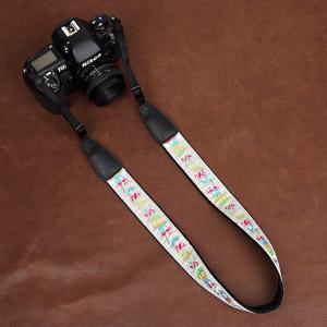 - カメラストラップ コットン マルチカラー 白系 アジアン cam-in カムイン CAM7575 おしゃれ 一眼レフ 斜めがけ ロープ 手首 かわいい