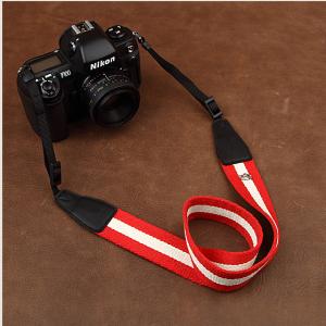 - カメラストラップ コットン レッド/ホワイト ストライプ cam-in カムイン CAM8097A おしゃれ 一眼レフ 斜めがけ ロープ 手首